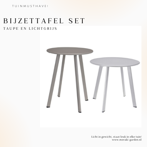 Metalen bijzettafel set voor buiten - lichtgrijs & taupe