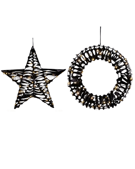 zwarte kerstkrans met verlichting voor binnen en buiten - staand - LED